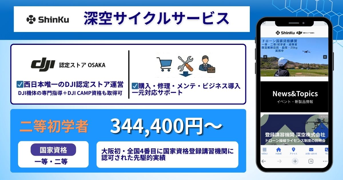 また、「深空サイクルサービス」はドローン国家資格の登録講習機関として大阪で一番最初に認定された実績を持ちます。